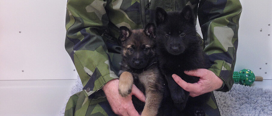 ”Hos oss stannar valparna tills att de är åtta veckor gamla, men efter det bor de hos våra fodervärdar i strax över ett år. Under den här tiden tränas de i bland annat lydnad men utsätts också för olika situationer så som att åka bil, buss och andra färdmedel. På så sätt uppstår naturliga situationer där de får möta andra hundar och människor. Som ett stöd för våra fodervärdar har vi särskilda fodervärdskonsulenter, som förbereder och hjälper hundarna för de miljöer de kan möta som tjänstehund i försvaret eller polisen. Det är till dessa fodervärdskonsulenter som vi köper in kläder så att de kan träna hundarna i alla väder.”