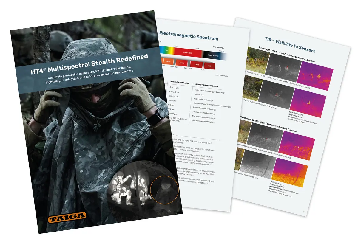 I denna broschyr presenterar vi vårt kamouflage och signaturhantering med fokus på TIR (termiskt infrarött) – ett avancerat multispektralt kamouflage utvecklat för modern krigföring, som ger skydd över UV-, VIS-, IR- och radarband. Språk: engelska.