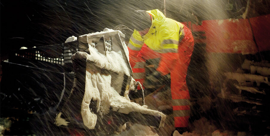 - Skydda arbetsplatsen mot vind. Vid låga temperaturer ger höga vindhastigheter större avkylning än vad termometern visar. Förfrysningsrisken ökar därmed och man bör därför hellre se till den så kallade vindkyletemperaturen (Tvind) beräknad som en kombination av temperatur och vind.